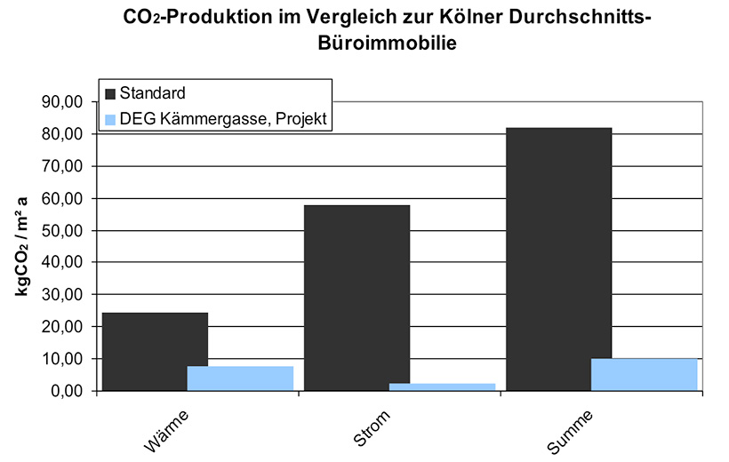 Neue Umweltstandards hat die DEG mit dem Neubau ihres Verwaltungsgebäudes in der Kölner Innenstadt gesetzt: Als erstes Gebäude der Stadt erhielt es ein Gold-Zertifikat der DGNB. Das Ingenieurbüro IPJ entwickelte ein maßgeschneidertes Energiekonzept mit Bauteilkühlung, Grundwassernutzung und einer natürlichen Durchlüftung über einen Innenhof mit „Cabriodach“.