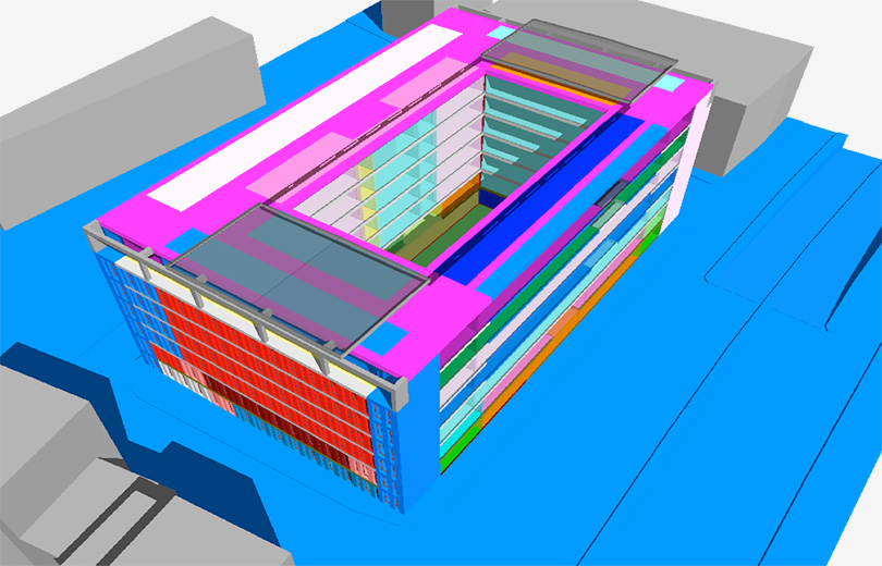 Das energieeffiziente und umweltfreundliche Gebäude unterschreitet die gesetzlichen Vorgaben um gut ein Drittel und spart im Vergleich zu herkömmlichen Bürogebäuden jährlich rund 700 Tonnen CO2 ein. Erreicht wird dies unter anderem über einen konsequent geringen Energieverbrauch, eine umweltschonende Gewinnung von Kühlenergie aus dem Grundwasser und eine netzgekoppelte Photovoltaik-Anlage zur CO2-freien Erzeugung von Solarstrom. Ein klimatechnisches wie architektonisches Highlight ist das große verglaste Cabriodach des Innenhofs, das sich bei steigenden Temperaturen automatisch öffnet. Der gelungene Neubau zeigt in vorbildlicher Weise, wie attraktiv energieeffiziente und nachhaltige Bauten gestaltet werden können.
