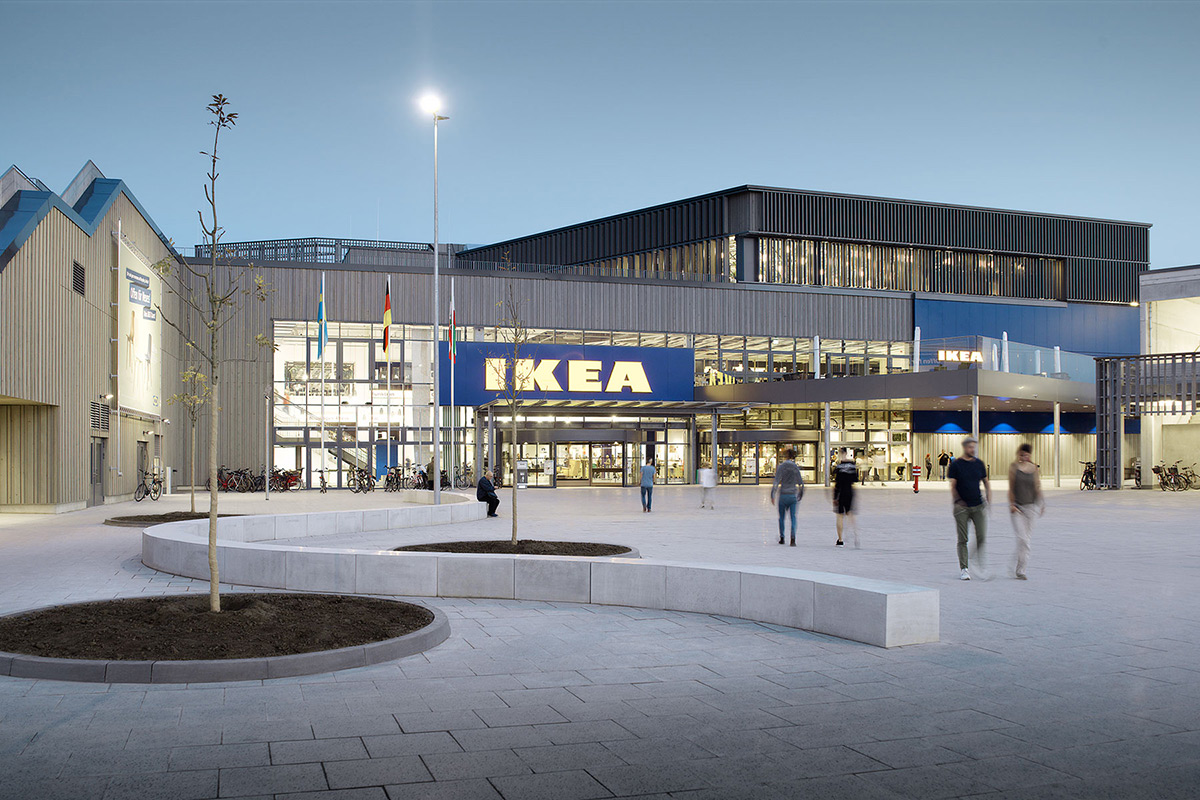 Das Ingenieurbüro IPJ hat das Energiekonzept für das wegweisende neue IKEA-Gebäude mitentwickelt und dabei eine Vielzahl ressourcenschonender Technologien kombiniert: Ein Blockheizkraftwerk, eine Solarthermieanlage und eine 400kW-Photovoltaikanlage sorgen für eine umweltfreundliche Energiegewinnung, eine besonders gute Dämmung für ein angenehmes Klima. Das Möbelhaus ist hell und luftig und trägt so zum Wohlbefinden bei, dank besonders großer Tageslichtöffnungen in allen Räumen. Die restliche LED-Beleuchtung wird energiesparend und tageslichtabhängig gesteuert. Die einzelnen Gebäudeteile sind durch begrünte Terrassen miteinander verbunden; die Außenanlagen wurden in Zusammenarbeit mit dem Naturschutzbund Deutschland (NABU) entworfen und sind so gestaltet, dass sie dem Schutz der Artenvielfalt dienen.