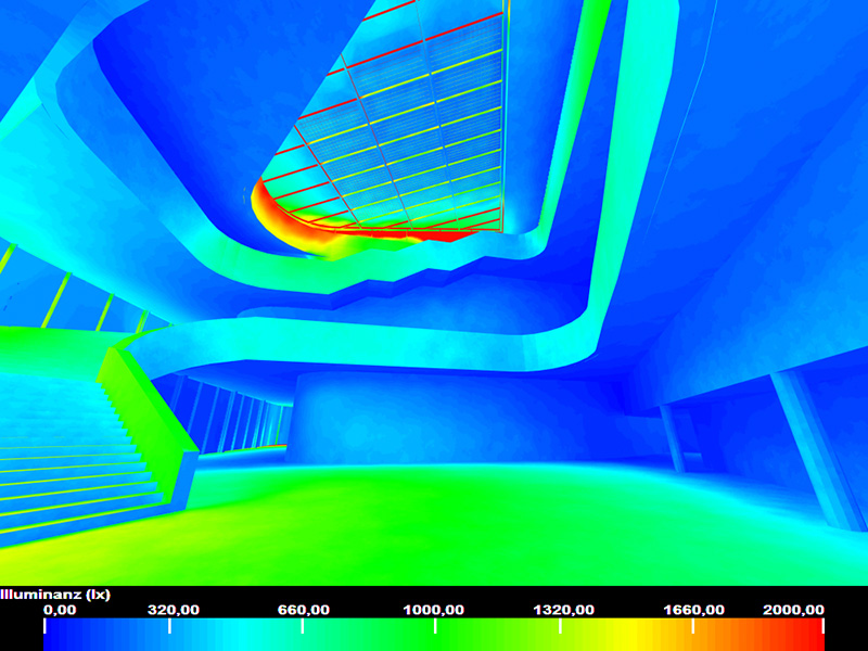 Das Energiekonzept ist vielschichtig. Der Energieausweis des Gebäudes entspricht der Klasse A. Die geothermische Wärmepumpe, die aus der vorbeifließenden Ill Wärme und Kälte entnimmt, wird durch Fernwärme ergänzt. Der Konzertsaal ist mit einer LED-Beleuchtung der neuesten Generation ausgestattet – dimmbar von 100 bis 0 Prozent ermöglicht sie eine stufenlose Regelung der Helligkeit. Extrem effiziente Lüftungsgeräte versorgen die Innenräume. Das Foyer wird im Sommer zusätzlich durch automatisch gesteuerte Fassadenklappen natürlich durchlüftet und dadurch gekühlt.