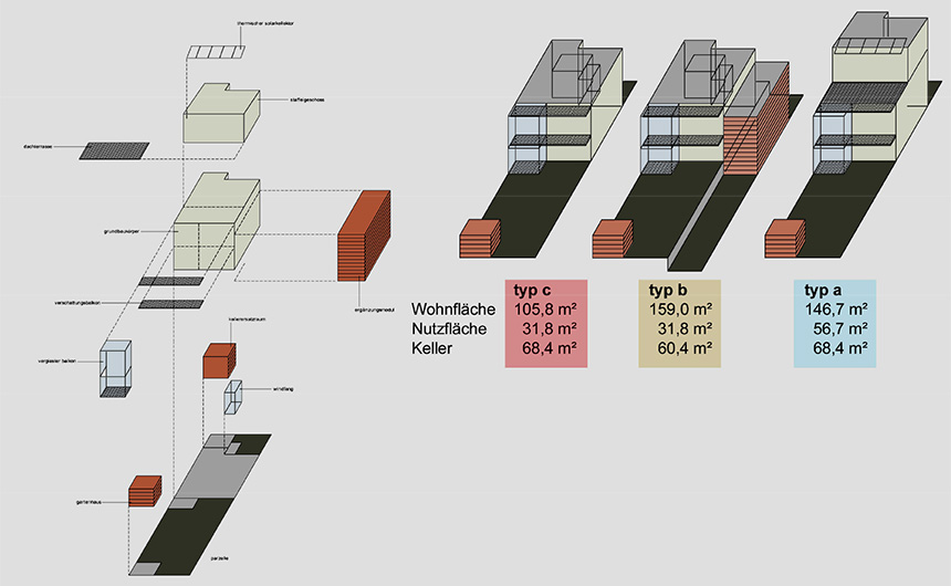 Der gesamte integrale Planungsprozess war geprägt durch die Analyse unterschiedlicher Lösungsvarianten. Pro und Contra wurden dabei jeweils aus Sicht des Bauherren, des Architekten und des Ingenieurs dargestellt und gemeinsam abgewogen. Durch die enge Verzahnung konnte so der entstehende Entwurf zeitnah und bis in Details hinein immer weiter optimiert werden. Auf das Ergebnis sind wir alle ein wenig stolz: Bei den Häusern am Leimbacher Berg ist es gelungen, den CO2-Ausstoß auf ein Viertel dessen zu senken, was bei einem Neubau in herkömmlicher Bauweise üblich ist, bei einem völlig ortsüblichen Kaufpreis der Häuser.
