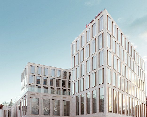 Der Standort Friedensplatz in Bonn hat für die Sparkasse eine lange Tradition – seit 1913 ist das Geldinstitut hier ansässig. Hundert Jahre später wurde der Neubau der Sparkasse KölnBonn an dieser Stelle als nachhaltiges und energieeffizientes Verwaltungs- und Handelsgebäude errichtet.